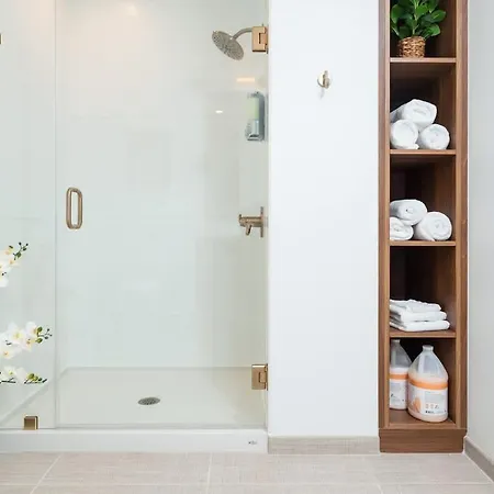 Guests staying in Back-Bay Penthouse Downtown & Parking & Gym Apartment will enjoy the convenience of a hair dryer, bath sheets, and towels in the bathroom.