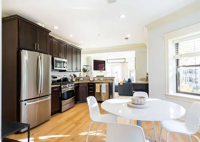 If you want to stay in the center of Boston, Brownstone Luxury Penthouse Condo Brookline is a perfect choice located around 20 minutes' walk from Museum of Fine Arts. This apartment has a patio with views of city.