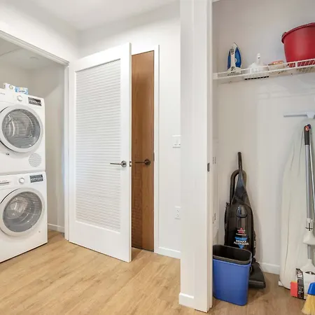 Spacious Apt Full Kitchen In Seaport is equipped with a bathroom that features a hairdryer. Additionally, you'll find a washing machine.